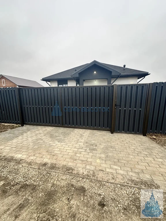 Земля огорожена забором, ОТКАТНЫЕ ВОРОТА, калитка, парковочное место на два автомобиля.